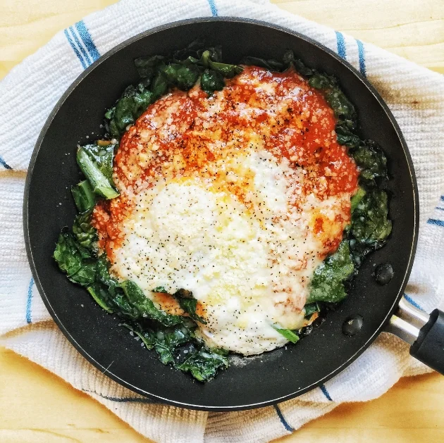 It has been over two years since I have gotten back from Israel, but I am still just as obsessed with Shakshuka. There was definitely a period in my life where I was eating Shakshuka for breakfast every morning for a few months. It is the quickest and most low maintenance breakfast ever, and you can really spice up its nutritional value by adding different greens, spices, and even Greek yogurt. I made this version with kale, garlic, and a dash of Parmesan cheese and black pepper.
