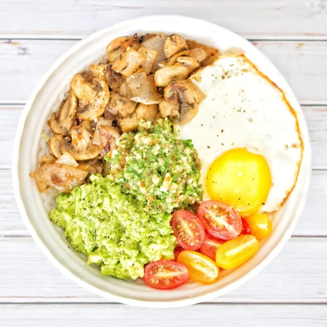 This breakfast bowl is more of a brunch bowl, as it will definitely keep you full well into the afternoon! It's loaded with complex carbohydrates, protein, and healthy fats, making it a balanced meal that's also teeming with antioxidants. Make some for lunch, or enjoy it first thing in the morning as a decadent breakfast meal.